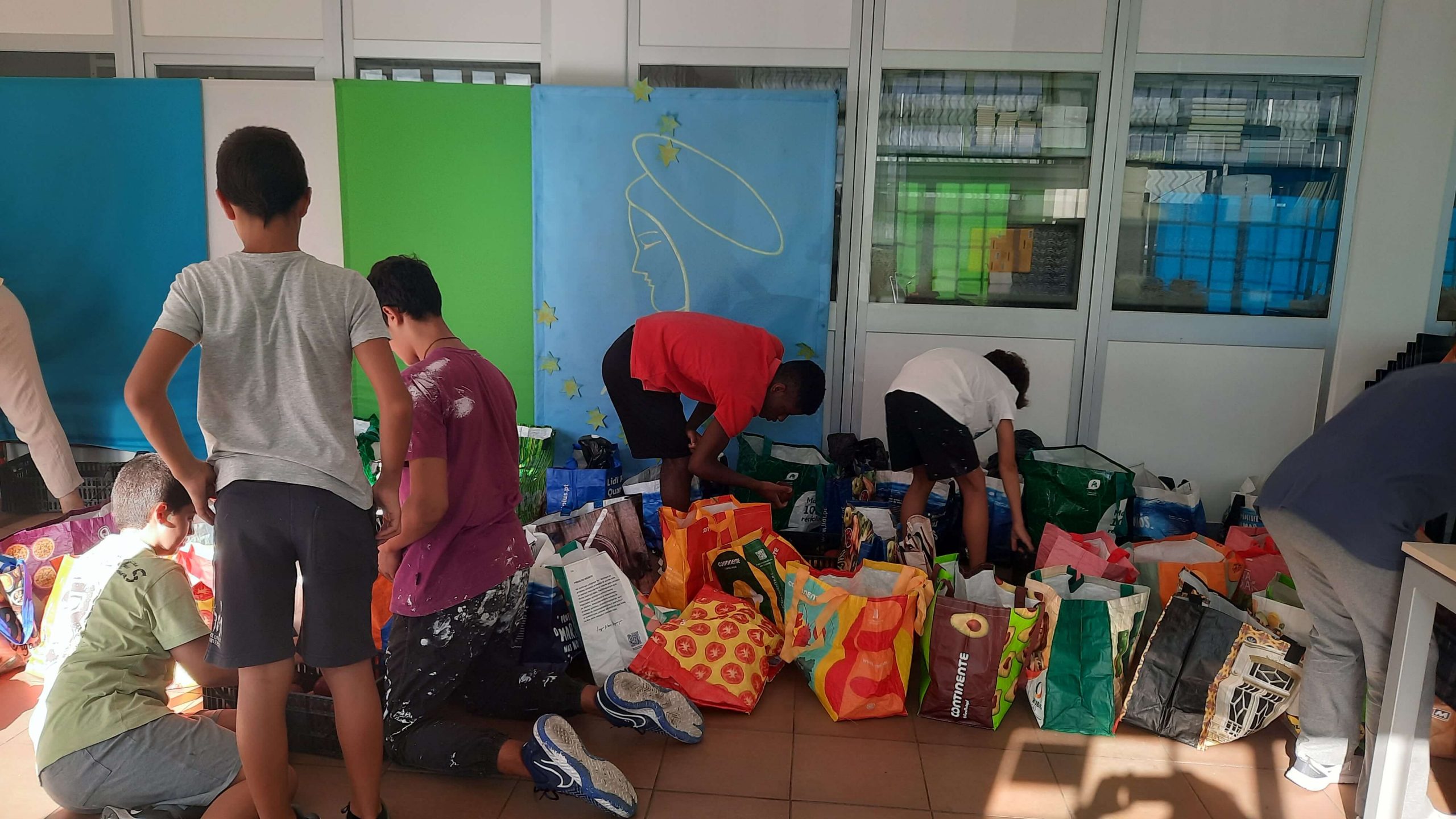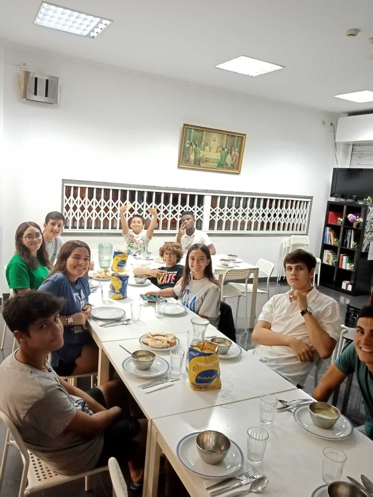 Na semana de 6 a 11 do passado mês de setembro, os nossos jovens, missionários de Deus, aceitaram o desafio de com as suas próprias mãos,  inseridos na nossa comunidade, conhecer a realidade da sua Igreja. Foi uma semana intensa onde conheceram a Sede da JMJ em Lisboa, pintaram um dos espaços na Igreja de N.ª Sr.ª da Paz, foram com voluntários buscar alimentos para a Pastoral da Caridade e ajudaram na preparação e entrega dos cabazes semanais das famílias que apoiamos. Arrumaram ainda outros espaços da comunidade, Centro Social e Paroquial, escolas e Centro Pastoral. Conheceram e testemunharam o trabalho árduo e a entrega de alguns dos voluntários da nossa paróquia.